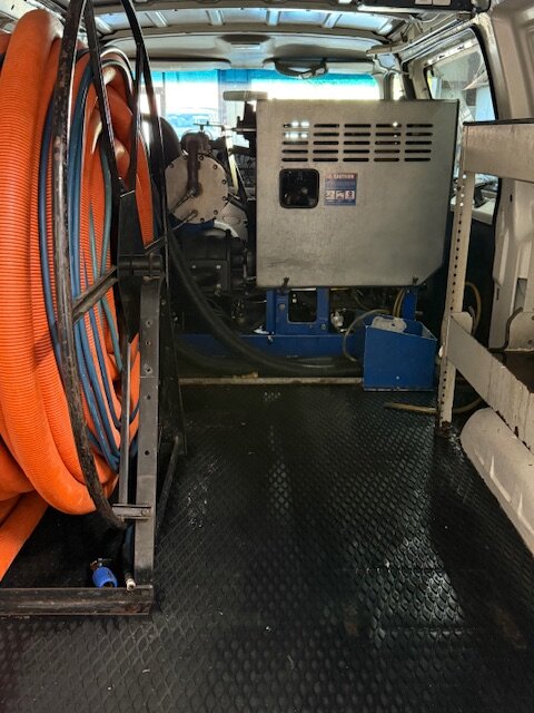 Van has only 102,300 miles, truckmount has 7333 hrs. Used mainly as backup system and on large jobs for many years. Purchased both van and machine new and always garage kept and maintained as recommended.