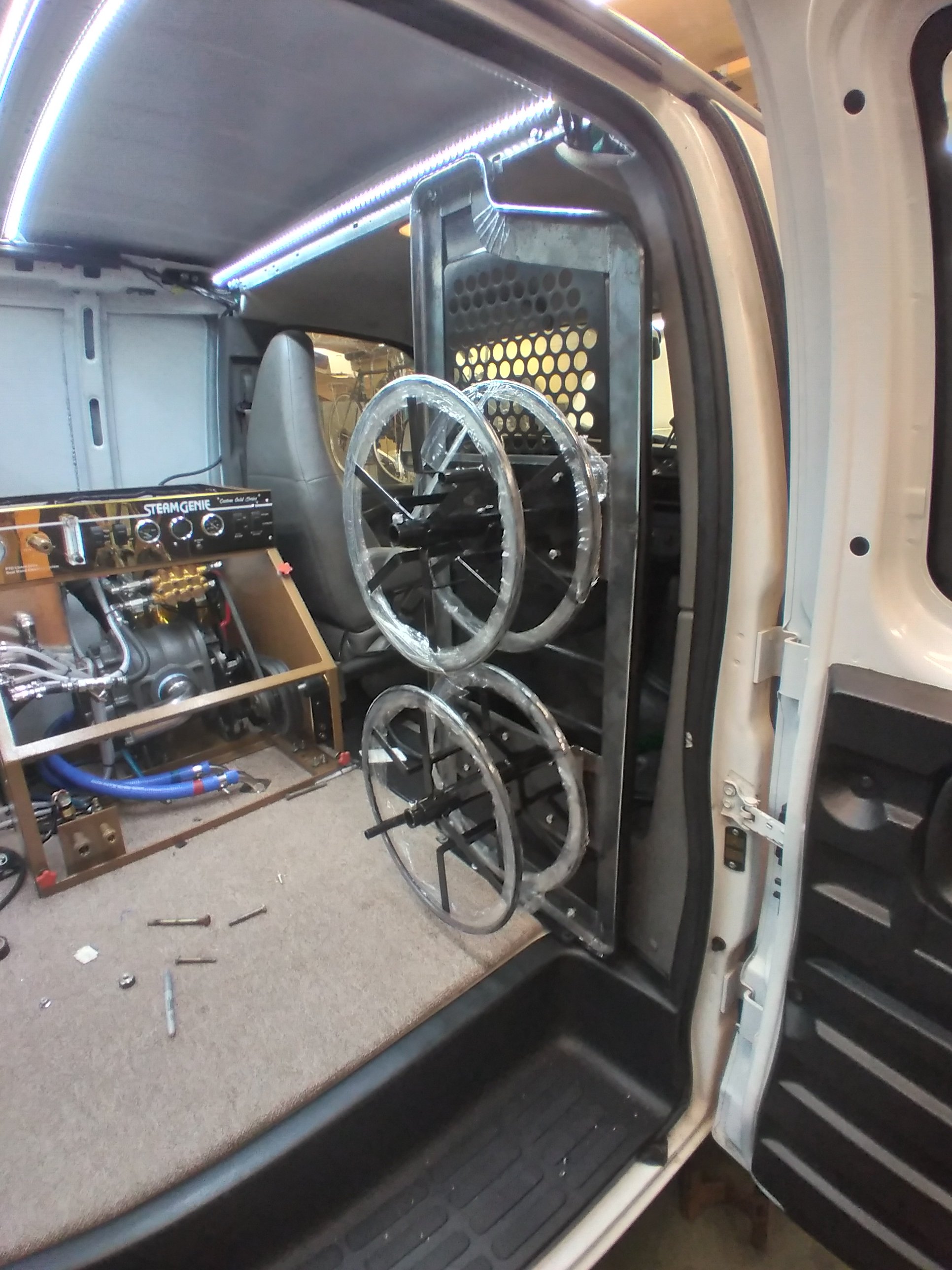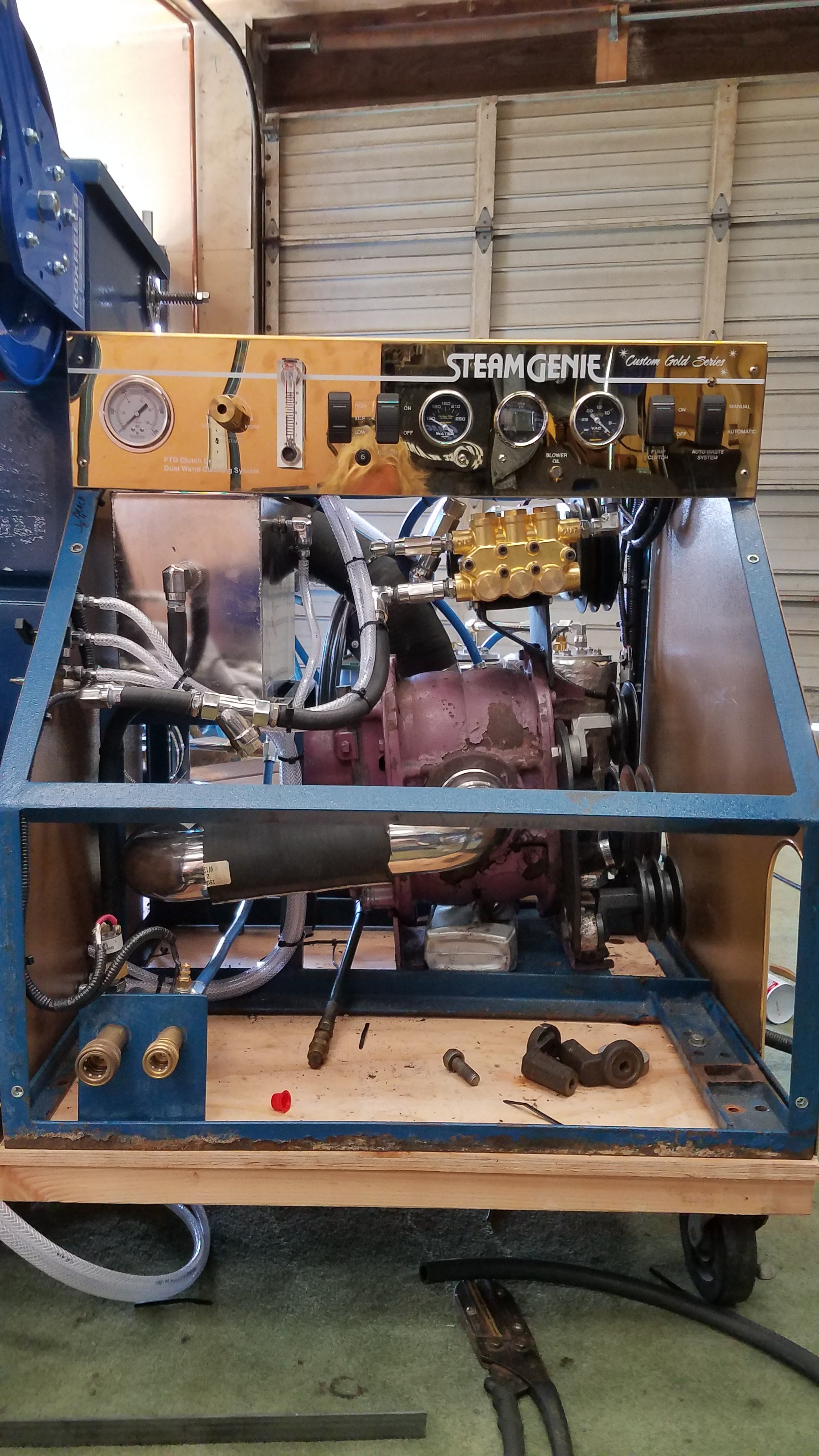 Probably how it should have been done in the first place.It doesn't need rebuilding it still runs fine, when i built frankinstien i wanted a new machine . Not another machine built from used parts. Properly maintained The machine i built has a life expectancy of 20 to 25 years. It is replacing a 23 year old steamgeni pto(now delegated to be a backup machine) , this machine is solid stainless steel construction, 50gallon wastetank ,machine tins and custom filter box no brass fittings all stainless. It started life as a 1998 steam geni 45 pto it has the best of the best cleanco engine mount with steamgeni drive shaft Cleanco's water to water heat exchangers with hydramaster salsa afterburner, prochem/comet waste pump ,hypro pressure pump roots 47 blower, prochem/general chemical pump, custom electrical distribution prochem waterpond with modified mytee shelf across back custom narrowed side shelving custom modified crash screens all installed in a 2020 chevy 6.0L extended van all pieces custom powdercoated no paint all in chicken feathers everything $61,000