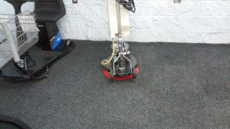 I scrubbed with a red pad. I was gonna scrub with a green pad, but that stupid huge fan above that kept blowing down on the carpet was making my pre spray dry to soon, and I was worried that the green pad would overheat. In other words, the air movement in there was fighting me. There were a few places I couldn't let it dwell long enough, worried that it would dry before I HWE