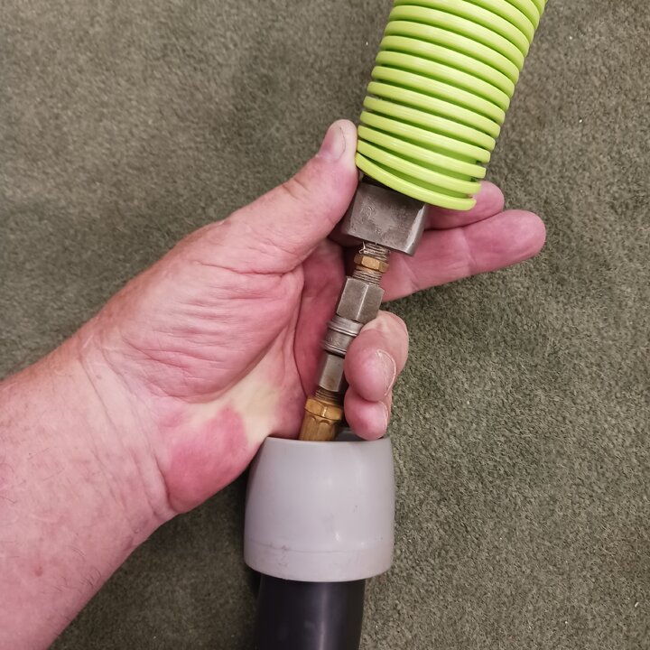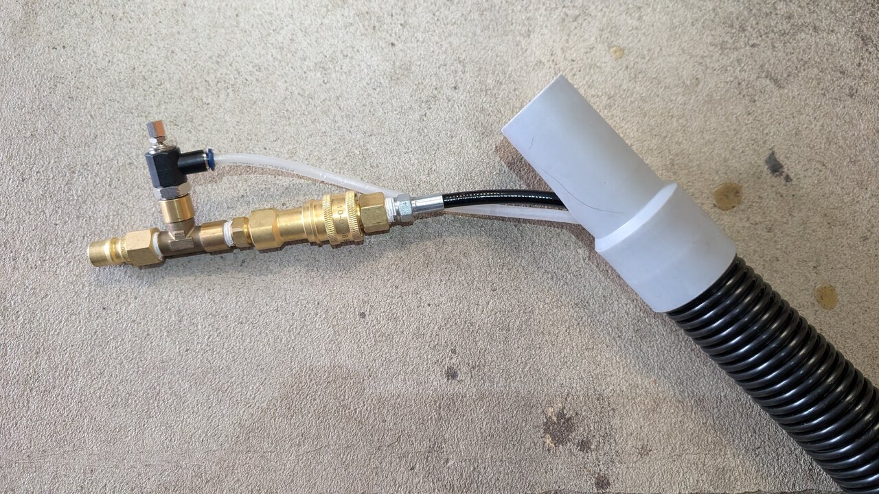 I understand, for me , i pump so the amount of soulition going into the wastetank isn't an issue as far as removing the bypass ive only done that once. That was because i had to use my own water supply (waterpond) to do a large sectional. How about a valve like this one, this attachment was my inspiration to build bypasses for all my internal hosed attachments. It bypasses continously at the valve has a needle valve to adjust flow of the bypassed solution and can be turned completely off. As a mater of fact i thought that the prochem tool did the same by looking at it in the catalog and was really disappointed that it didn't. This is not my go to tool i use it mostly for rv and automotive interiors. But I do love how it keeps solution hot!