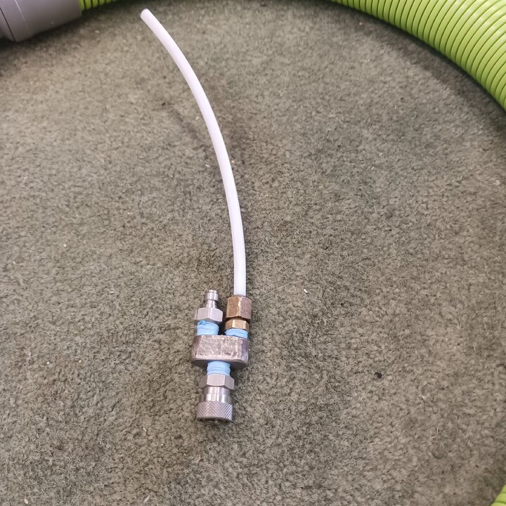 That bypass appears to be where the hose connects and youll have significant heat loss when you stop squirting solution for any length of time. Where as if you put a continuous bypass closer to the head your solution will stay hotter on a standard older prochem tool and a newer sapphire scientific tool i use a piece that i fabed up from kleanrite solvent attachment parts a small 2×1/8by 1-1/8 stainless manifold block 1- 1/8 mpt×1/8 fqc 1-1/8 mpt× 1/8 mqc and a kleanrite 1/8 mpt ×1/4 compression fitting internally threded for small bypass orifice to bypass at the attachment instead of the end of the hose works best added benefit is it is easily removed if necessary the bypass cost about 30.00 to build with off the shelf parts and can be made to work with any tool with internal solution hose so if you set the tool down to prespray or get useing vacuum for any length of time you dont have to heat up 10 or so feet of internal solution hose just squeeze the trigger and have nearly instant full heat! Better yet if you could find and use a valve that squirts when you squeeze it and bypasses when you let off the trigger. I assumed that was how the prochem tool worked with its little valve on the side but sadly not true . It bypasses but only when you squeeze the trigger