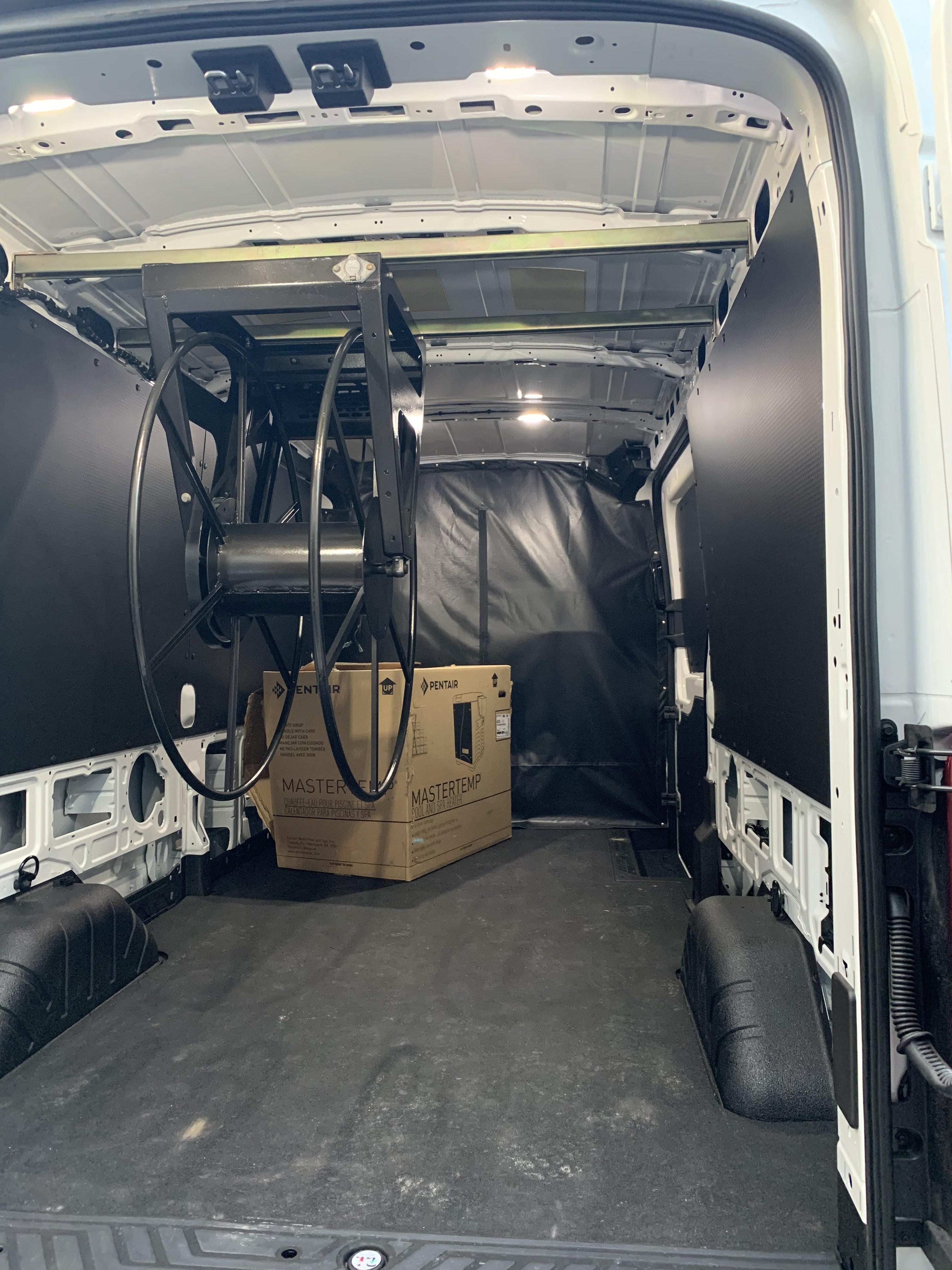 Looks superior to a POS Transit. It must be a Promaster.I like that! Is that a medium roof transit? My concern would be that the metal will fatigue over time where the reel braces mount. I was considering the same thing with my set up and decided without additional supports to the floor it will fail.