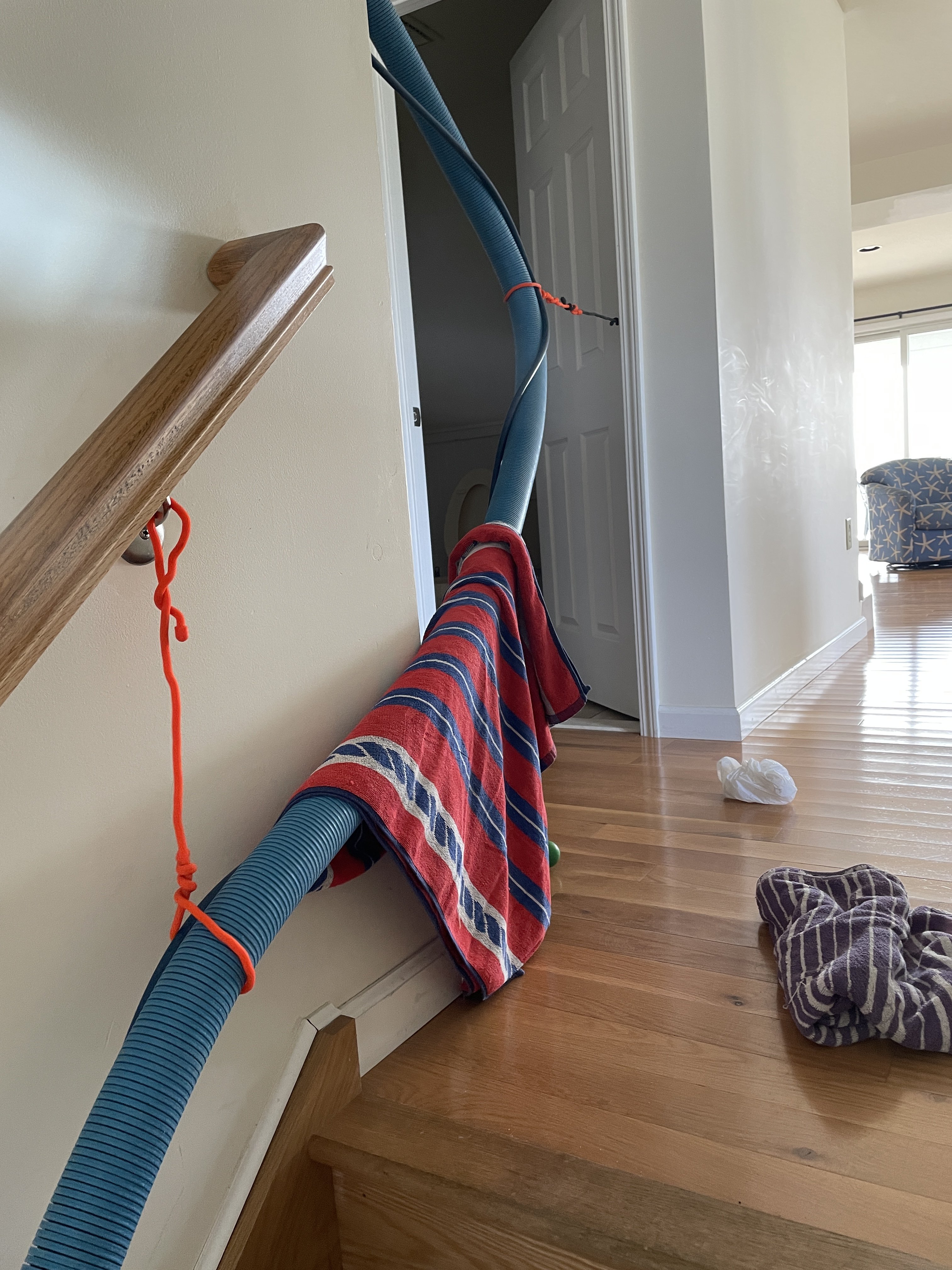 It kinda does amaze me. After so many years of a hook and a towel guarding the vinyl, this is positive moment of truth working.Never seen hose going up a staircase like that before. You’re amazing.