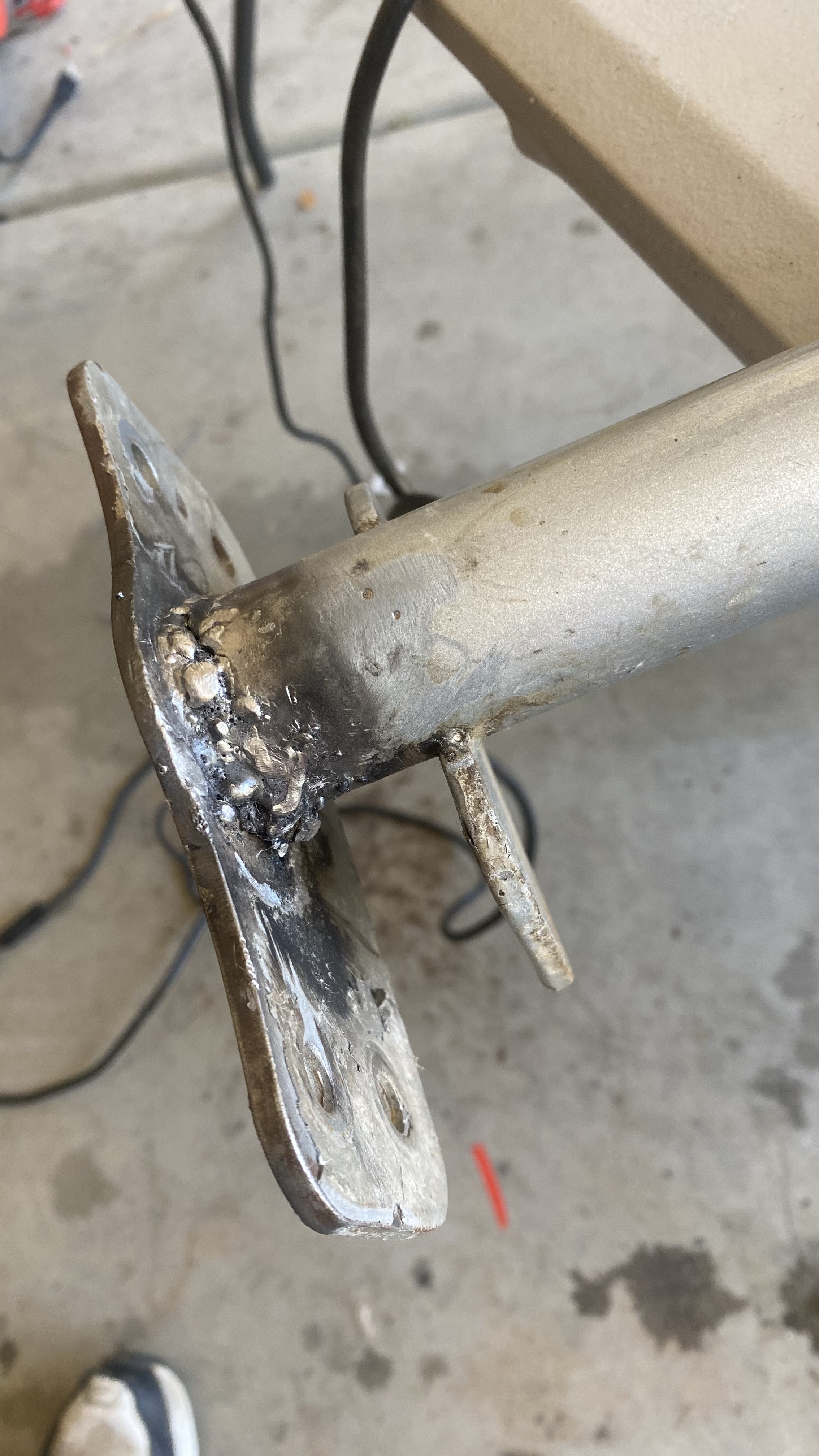 The welds are good. It took me a while to get the arc welder set on the right power setting. Just ugly as sin.Idk where Mikey ends and Ron begins….!