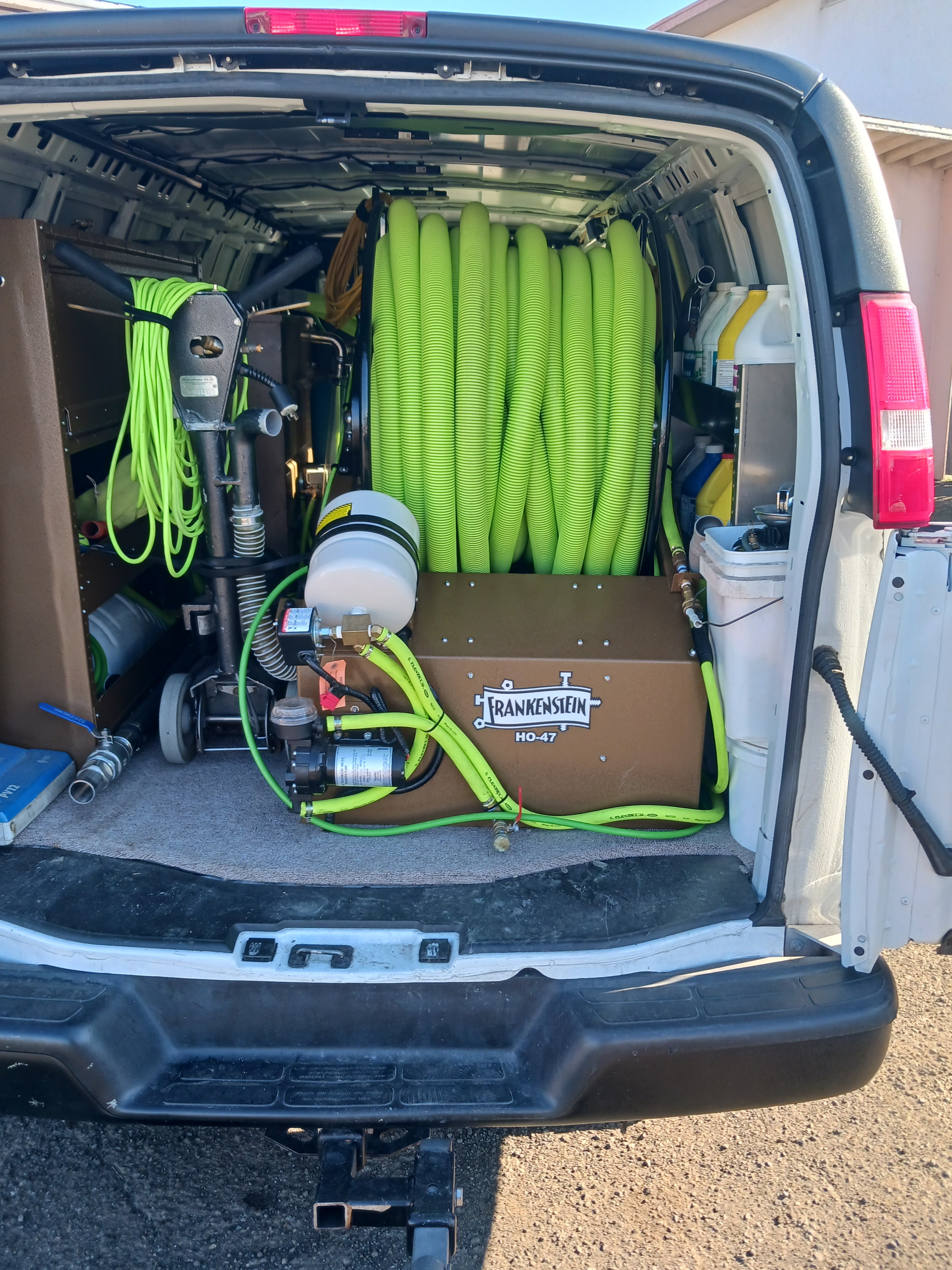 Beautiful thanks for the infoMy hoses are custom made for me by Amflex Plastics in oceanside calif. When all said and done, they weren't very much more than blue hoses from my supplier. But i was able to get custom lengths my first and last hose on the reel are 75' and 2 middle are 50'. You can get the same green hose from Wanders in standard 50' lengths with 1 noteable difference i ordered my hoses with no black most all hoses including the neon or lime green sold by Wanders has black between the outer raised links (look at your hose and you'll see what im talking about) i specifically ordered these hoses all green NO BLACK. I had these made October 2019 i had (3) 2" 75' (3) 2" 100' (1) 1.5" 100' (1) 1.25" 100' if i remember right it was around 900.00 delivered don't quote me on that . Amflex makes the best , and longest lasting hoses, last batch i had made was in 1999 and are still in great shape on my spare truck, i have a bunch of it for sale off my 2 decommissioned vans @.75 perft but you'll have to pick it up the supply and waste hoses are standard flexzilla hoses 1/2" 5/8" & 3/4" my solution hoses are leaf or leafy green 1/4" from Wanders i bought in bulk for $1 perft and used wanders stainless steel gater ends to put um together with bend restrictors from my local supplier i do not recommend Wanders bend restrictors. Hope this is helpful. Dwaino