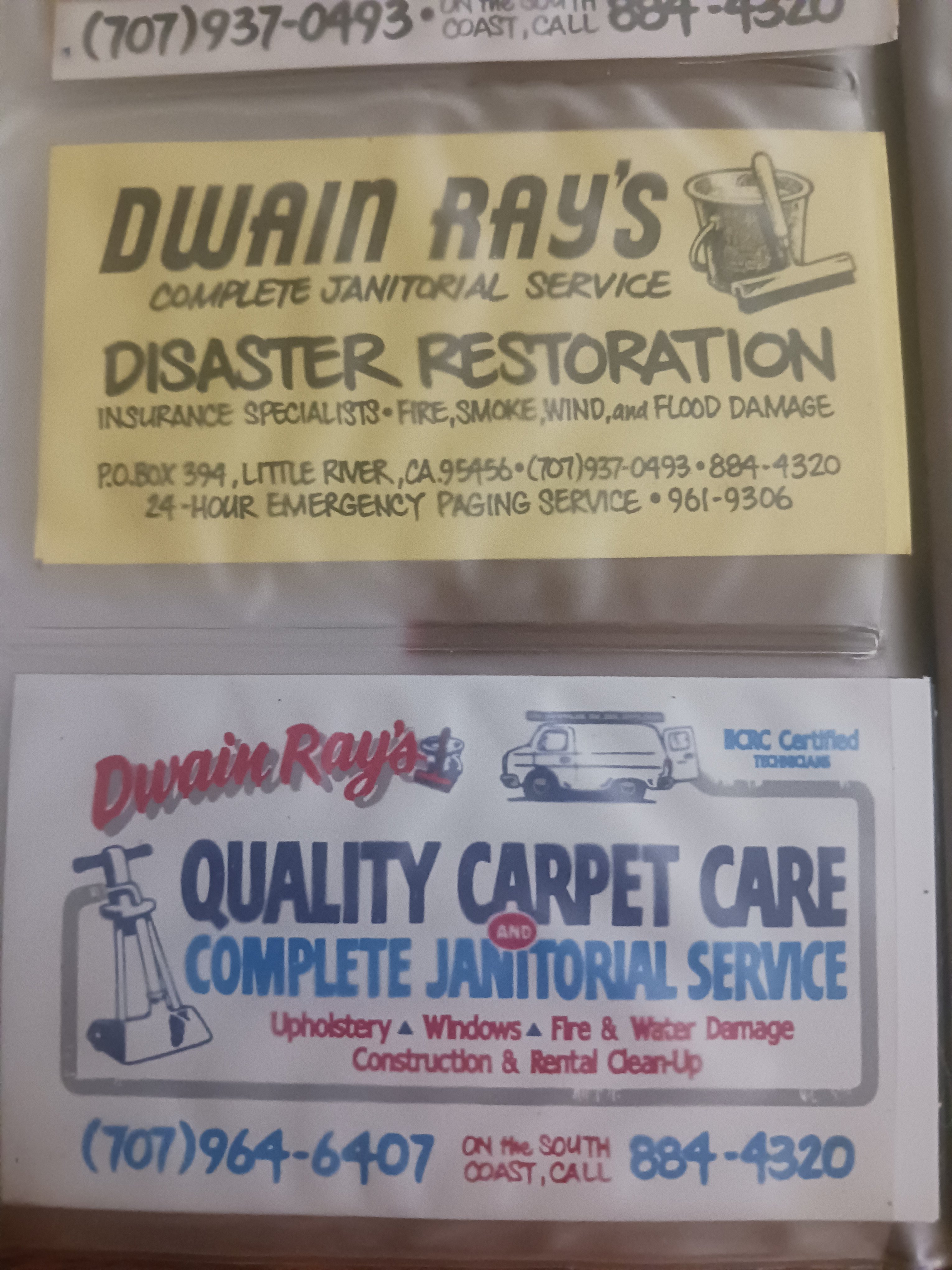 Nowadays it's Dwain Ray's Quality Carpet Care & Advanced Cleaning ServicesStarted out as a window cleaner been doin that since i was 12 at 68 not so much any more,when i had employees it was a good, now it just gets in the way ,the way i started the business was. While in the service stationed in point arena calif. i owed a friend 700.00 to make a long story short i started window washing around clearlake to pay him back, by the time i got out 20 months later i was doing 1500 a month working weekends as my business evolved so did the name